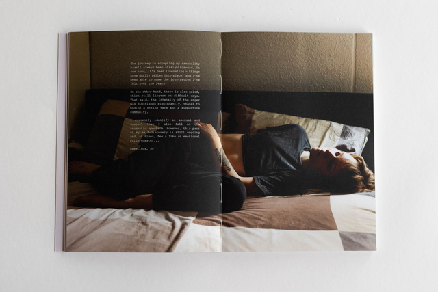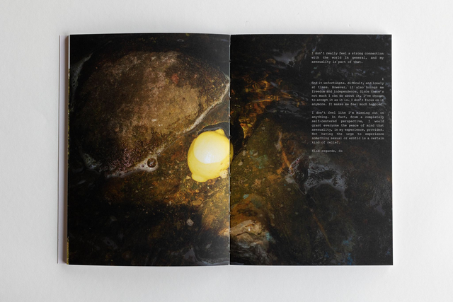 'Do you eat when you're not hungry?' is a visual exploration of the asexual spectrum, in which I identify as demisexual. This work combines metaphors, texts, self-portraits, still lifes and conversations with others within the spectrum. The project explores the complexity of asexuality and offers an intimate look at the feelings of loneliness, uncertainty, freedom and self-acceptance that can accompany it.